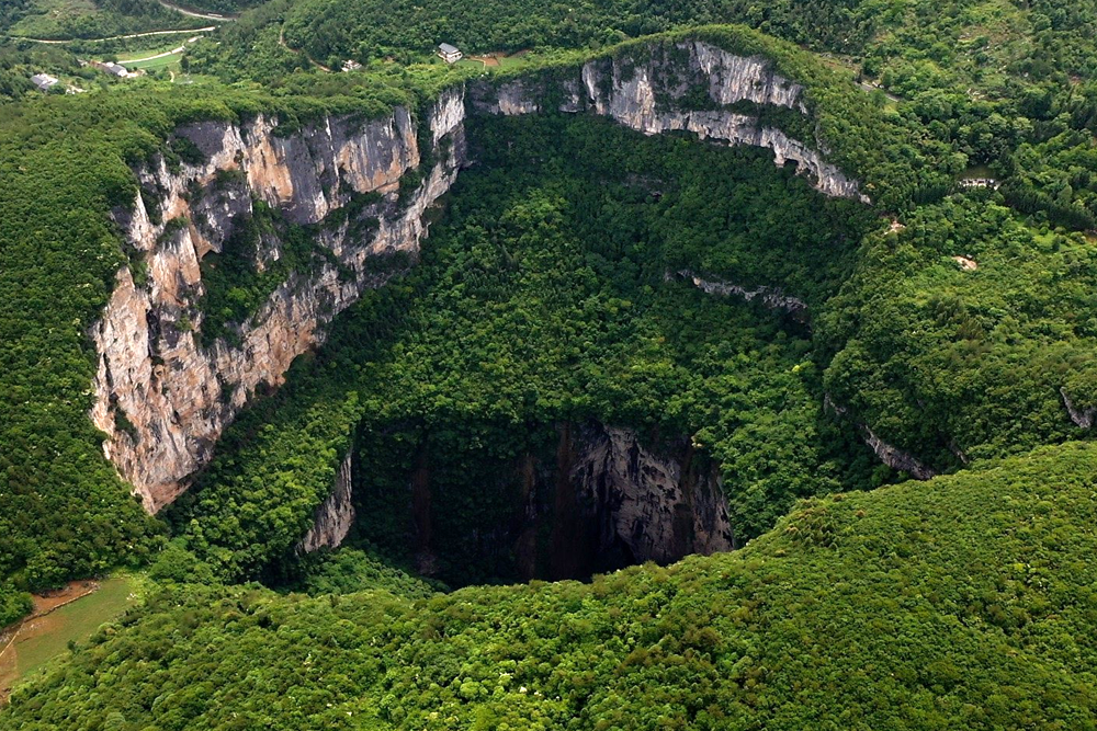 현재까지 알려진 싱크홀 중 가장 깊은 곳입니다. 티앤컹은 현지어로 '천상의 구덩이' 또는 싱크홀을 뜻합니다. 샤오자이 싱크홀은 깊이 662m, 너비 626m입니다.